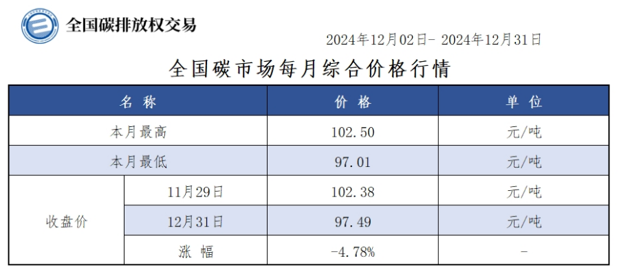 全国碳市场每月综合价格行情及成交信息20241202-20241231