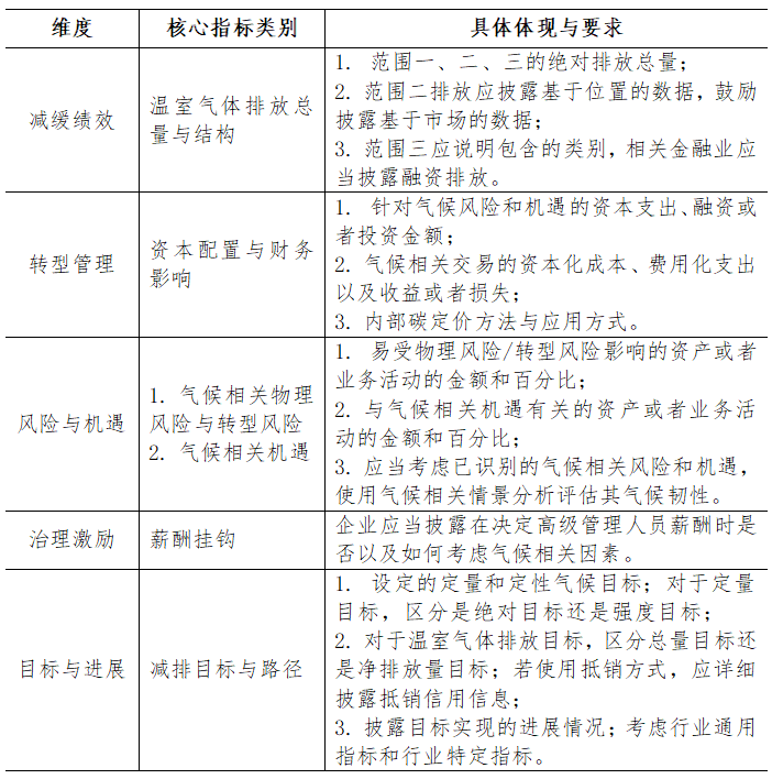 综合来看,准则构建了一套多层次、相互关联的气候核心指标体系,全面刻画企业在气候议题上的表现: